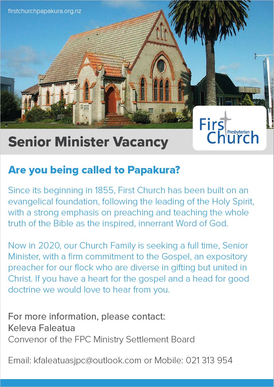 | Napier North Presbyterian Parish (Ahuriri-Putorino) | F/T | Brett Walker | Sole Charge | Read more | 2/20 | |