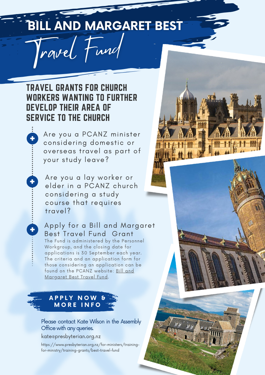 For additional information, contact Kate Wilson at 04 381 8291 or kate@presbyterian.org.nz