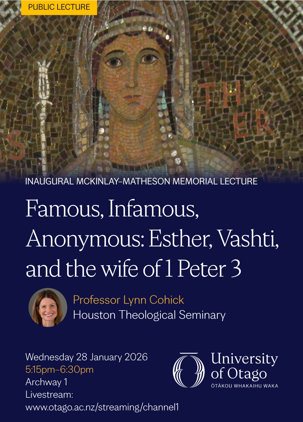 - If you miss it, the recording will be available shortly after and can be requested from theology@otago.ac.nz