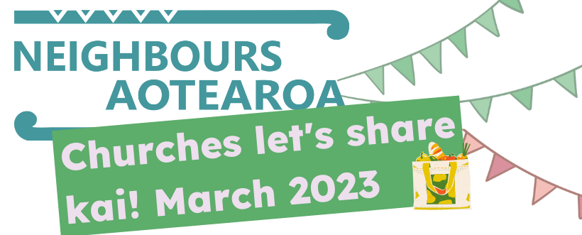 Let's Share Kai with our Communities, 1 March - 1 April 2023! Every March, Neighbours Aotearoa offers a great opportunity to connect the people in your neighbourhood and community with your church. There are so many ways you can take part - it can be as big or small as you want to make it. This year, we're encouraging you to embrace the 2023 theme of Let's Share.. Kai with our Communities.