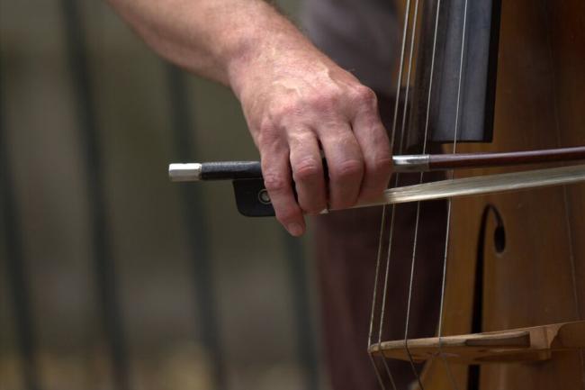 Cello player on the streets of France (2013). Photo supplied by Andrew Norton.