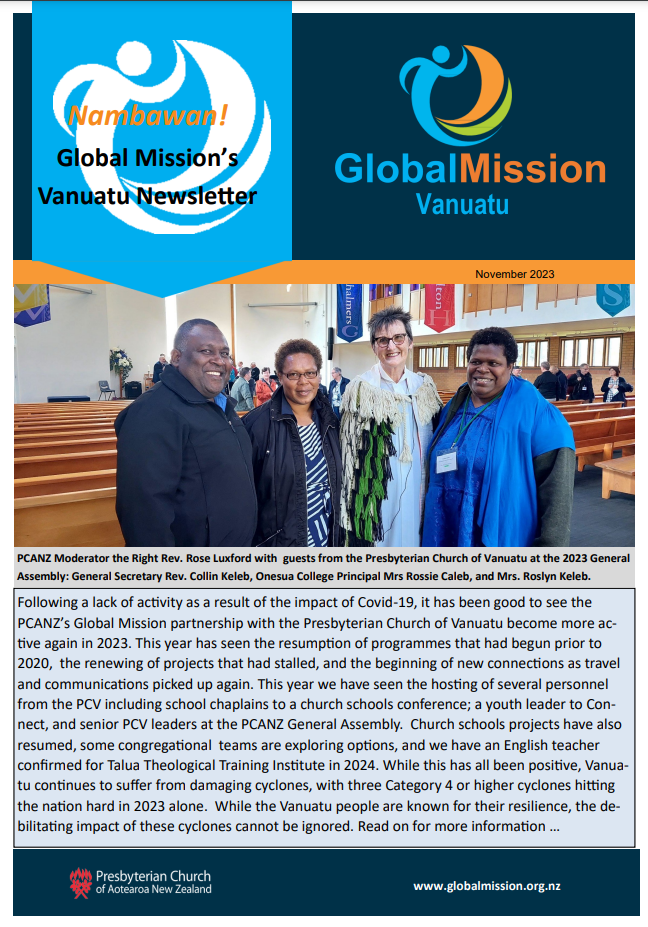 Download the Nambawan newsletter which is dedicated to our partnership with the Presbyterian Church of Vanuatu. This includes up-to-date information about our partnership, and opportunities to get involved. For previous newsletters please click here.