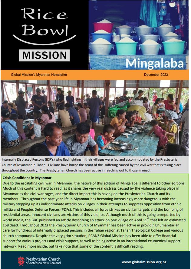 Read the latest version of Mingalaba, the newsletter dedicated to our Ricebowl Mission partnership with the Presbyterian Church of Myanmar. For previous newsletters please click here