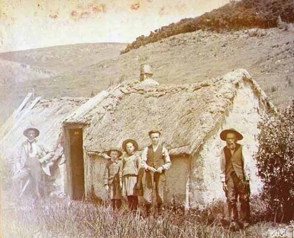 Sham Luk Ts'un is pictured here (at right) beside his traditionally styled sod hut. Windows were rarely included as being extremely superstitious, the Chinese considered that "bad luck would fly in and good luck fly out." Beside Sham Luk Ts'un is Rev. William Mawson, a Missionary in training for China, and we believe, Rev. Don's 3 children.