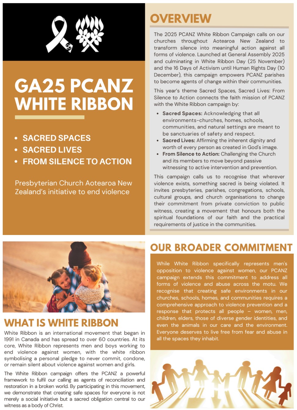 Launched at General Assembly 2025 and culminating in White Ribbon Day (25 November) and the 16 Days of Activism until Human Rights Day (10 December), this campaign empowers PCANZ parishes to become agents of change within their communities.