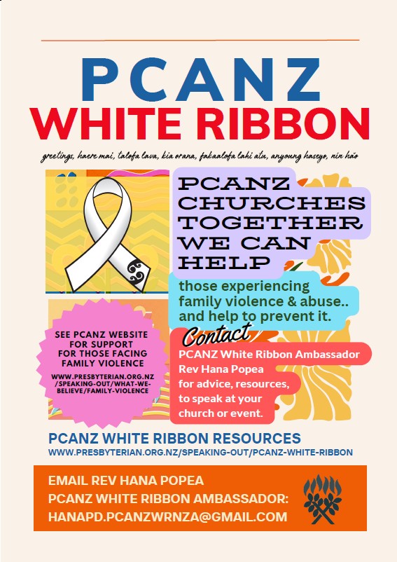 Resources for parishes to use on White Ribbon Day 25 November, and throughout November and the coming year, can be downloaded below. They include a message from Rev Hana Popea, a 2025 PCANZ White Ribbon video created for our recent General Assembly, an information sheet, and an updated printed poster. Download them below: